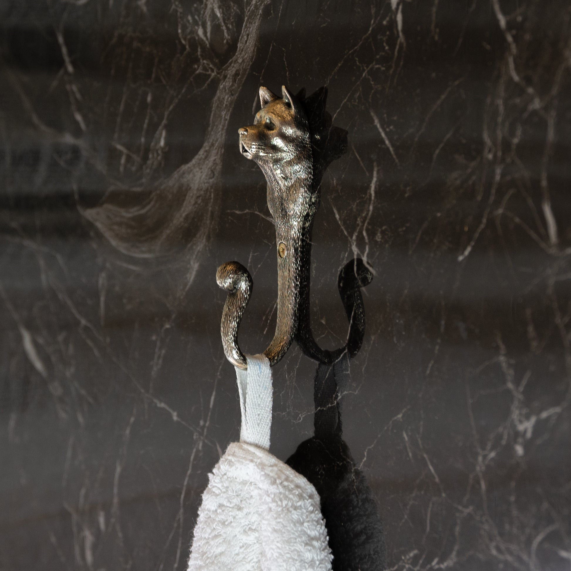 Add character and strength to your home with this handcrafted Akita dog wall hook, cast from durable Neusilber (German silver). Perfect for hanging coats, hats, keys, or bags, this hook combines functionality with unique design.