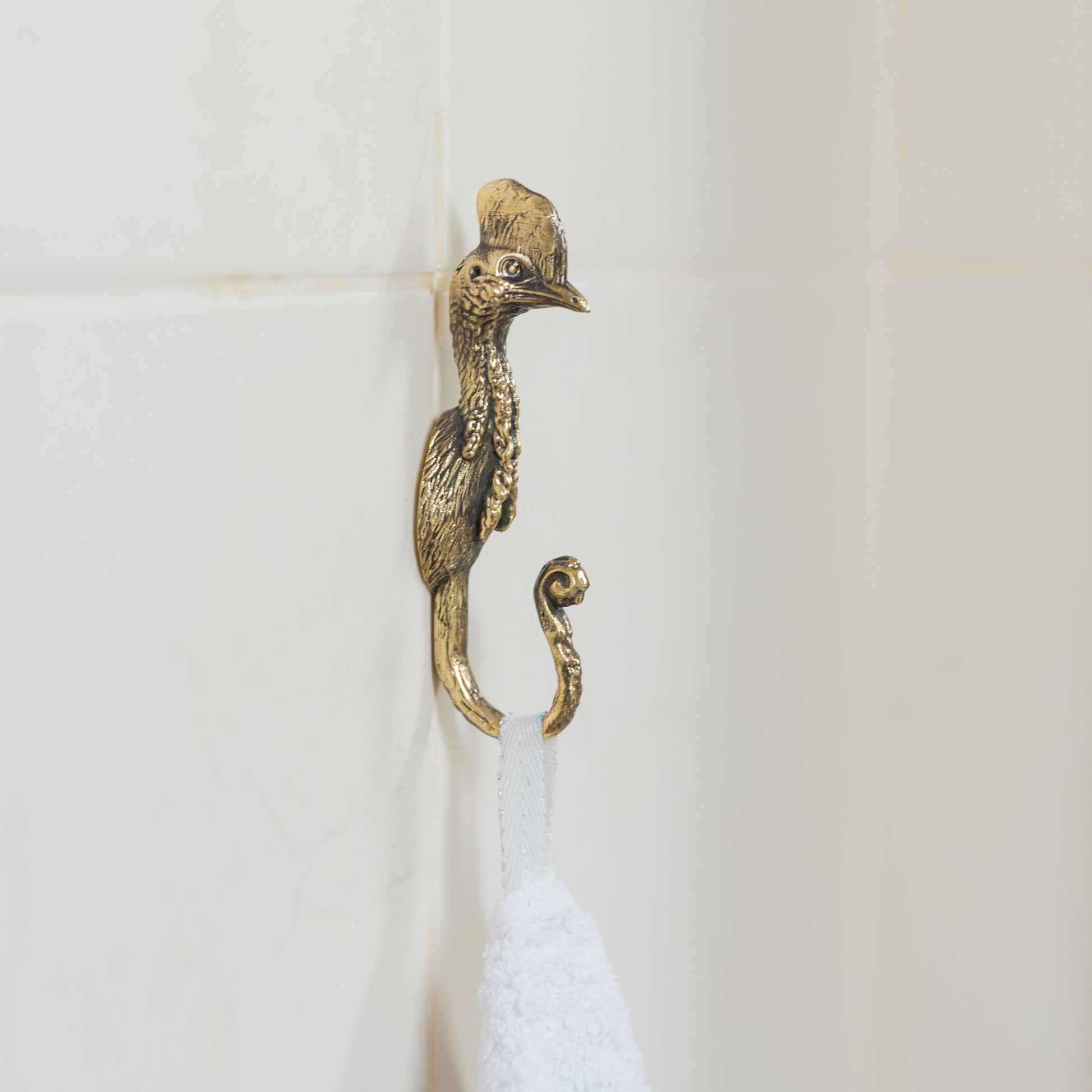 The cassowary — one of the world's rarest and most striking birds — symbolizes strength, mystery, and ancient nature. This detailed brass hook adds both artistic flair and everyday function to your space.