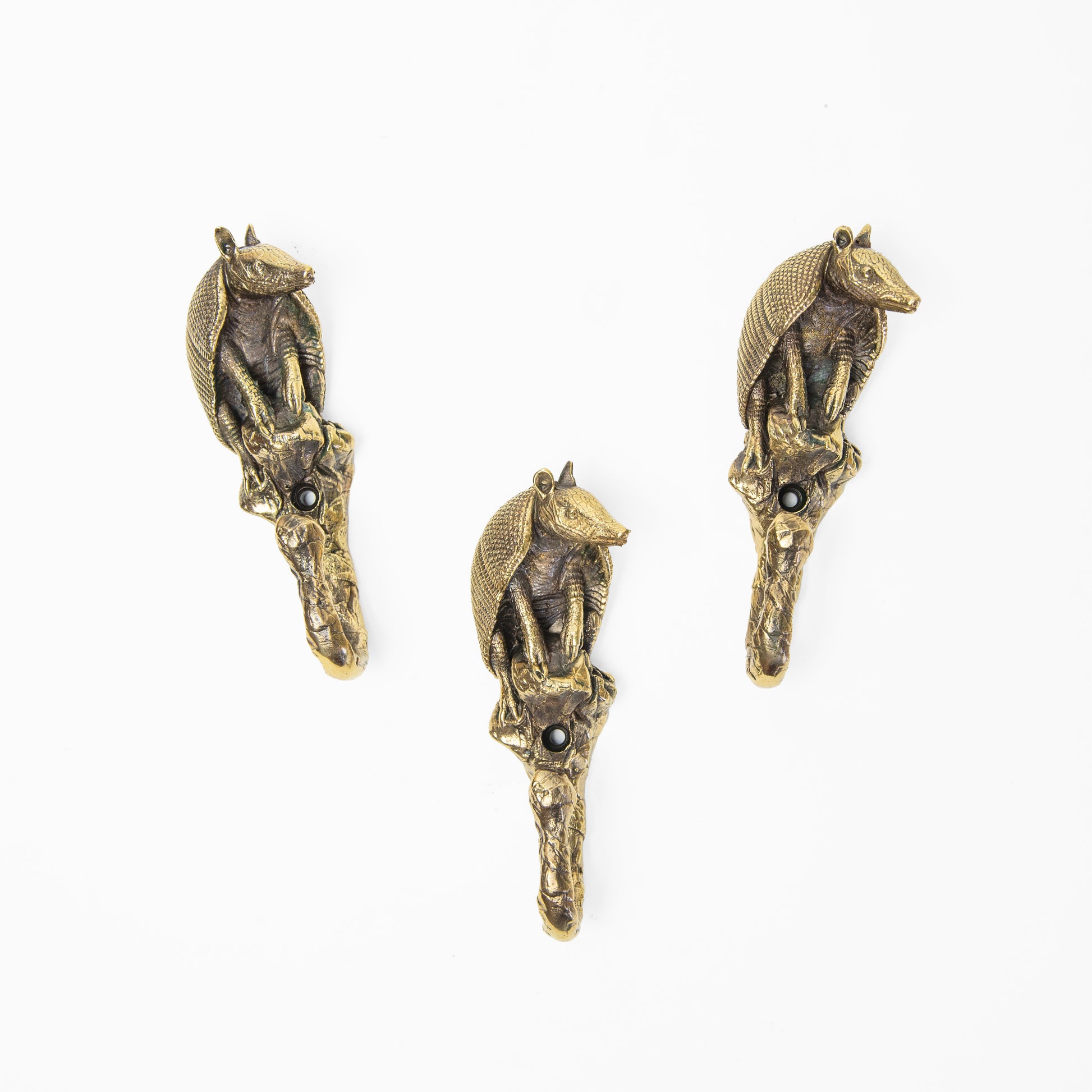 Bring character and charm to your space with this handcrafted brass wall hook featuring an armadillo – the perfect blend of strength and style.