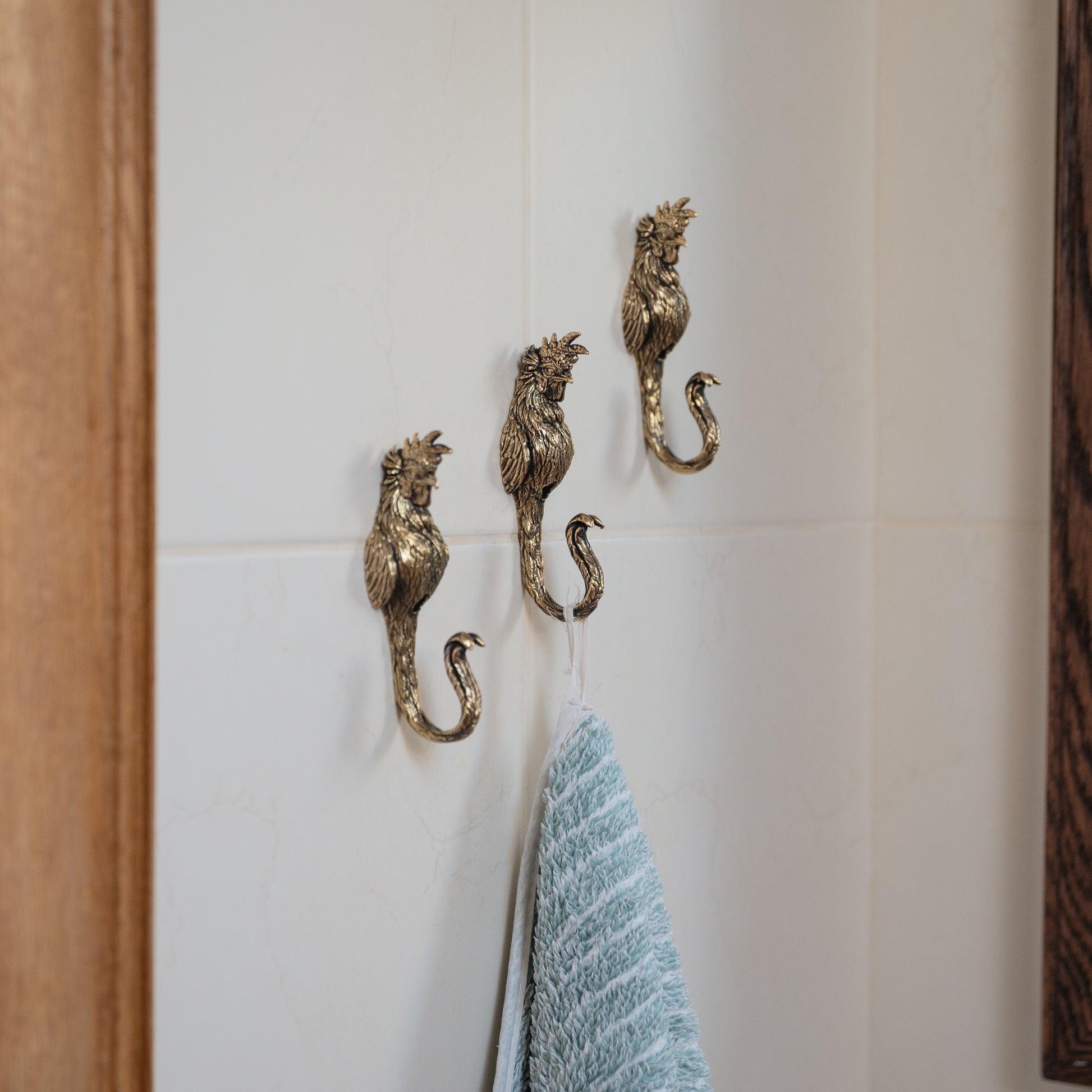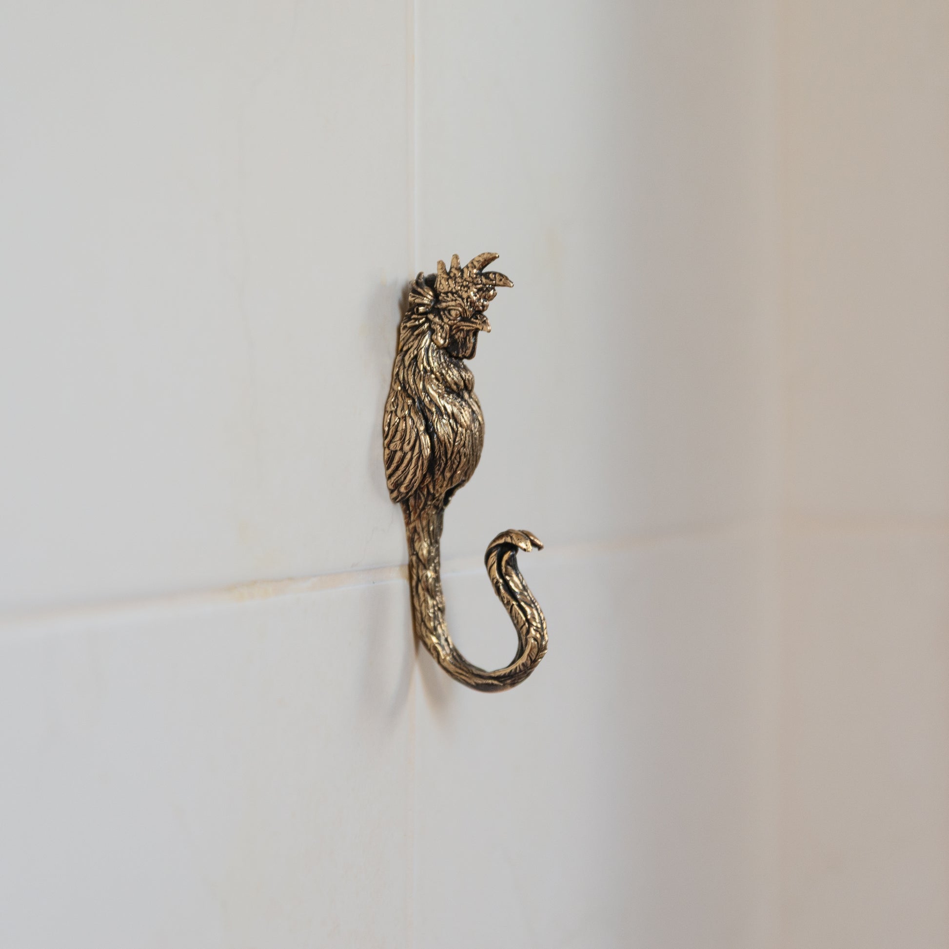 Bring farmhouse charm to your home with this brass rooster wall hook. Handcrafted from solid brass, it combines strength, durability, and a unique rustic design. Perfect for hanging towels, coats, hats, or kitchen accessories, this sturdy hook adds both function and style. Ideal for farmhouse, rustic, or country-inspired interiors, it makes a practical and decorative accent for your kitchen, entryway, bathroom, or garden space.