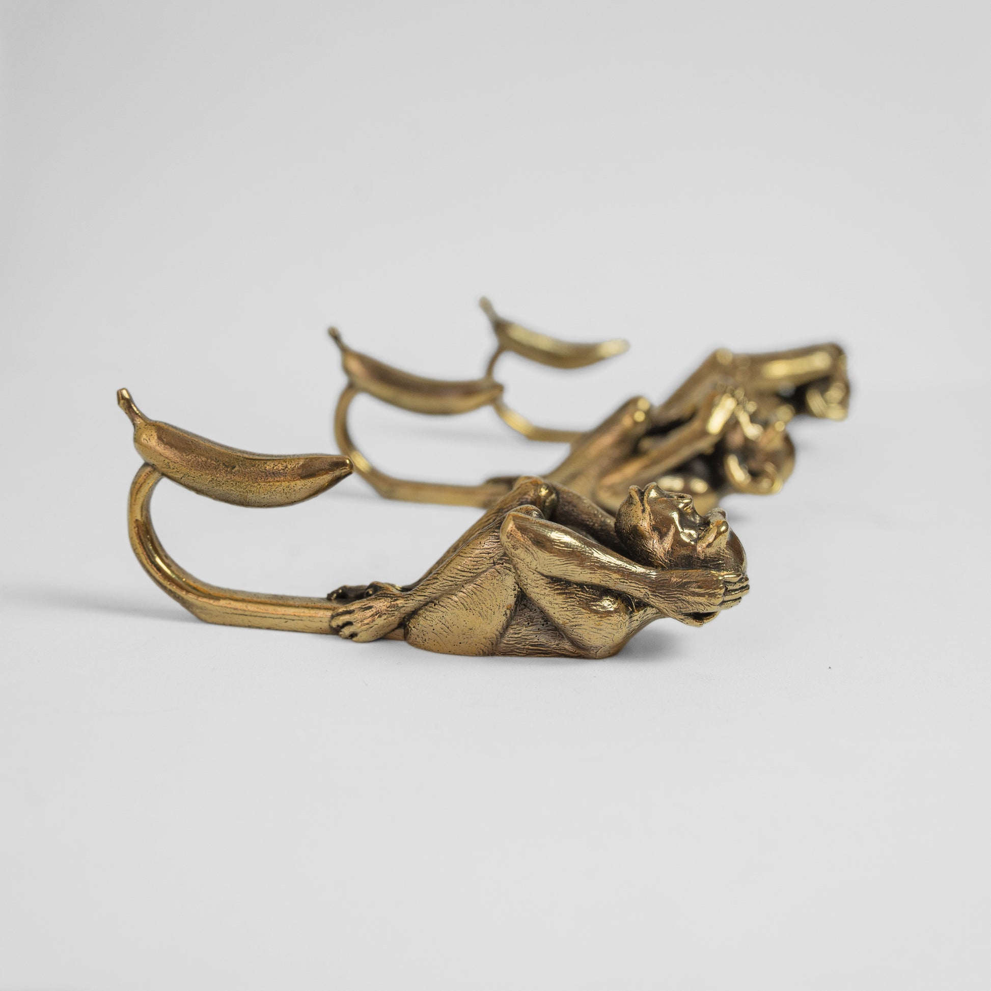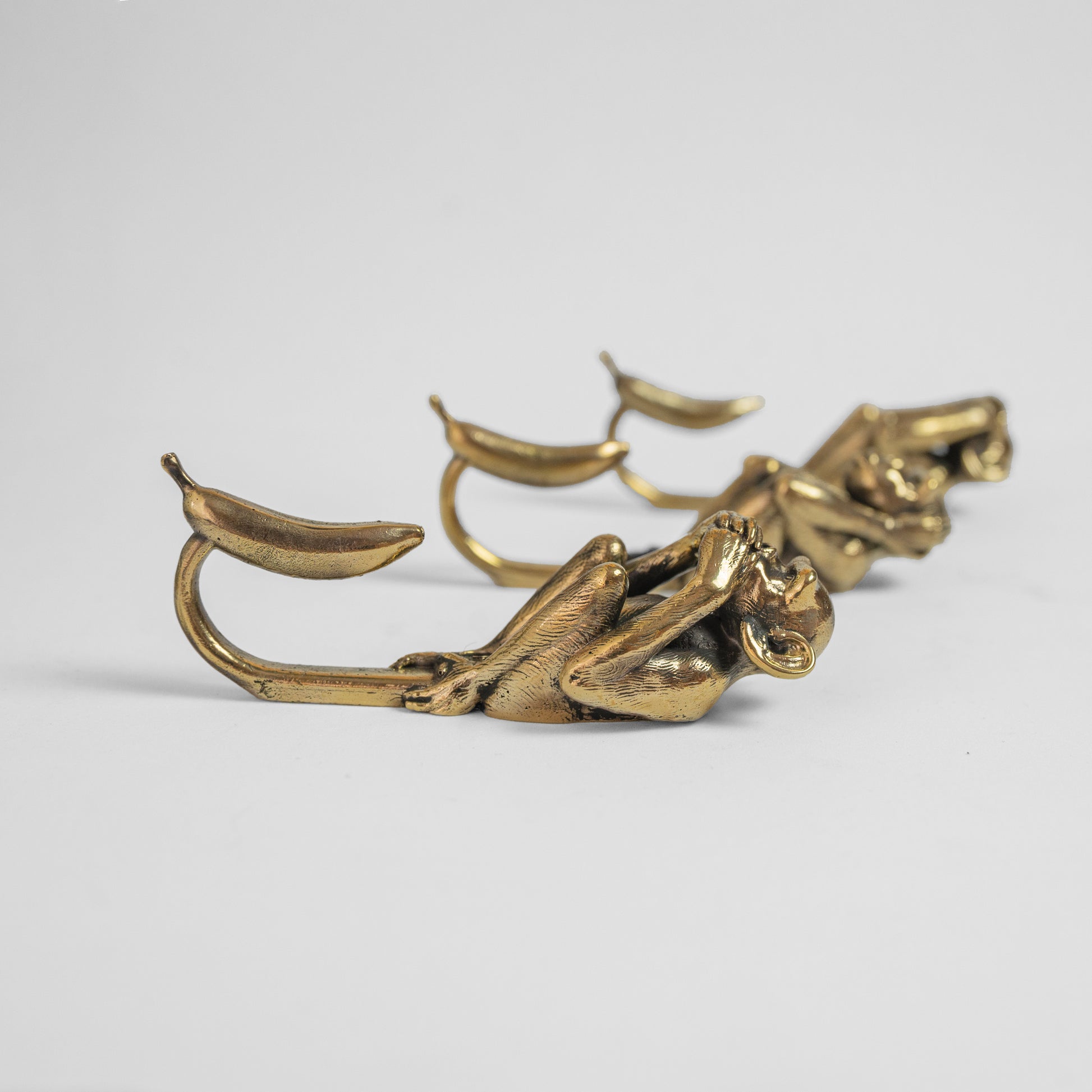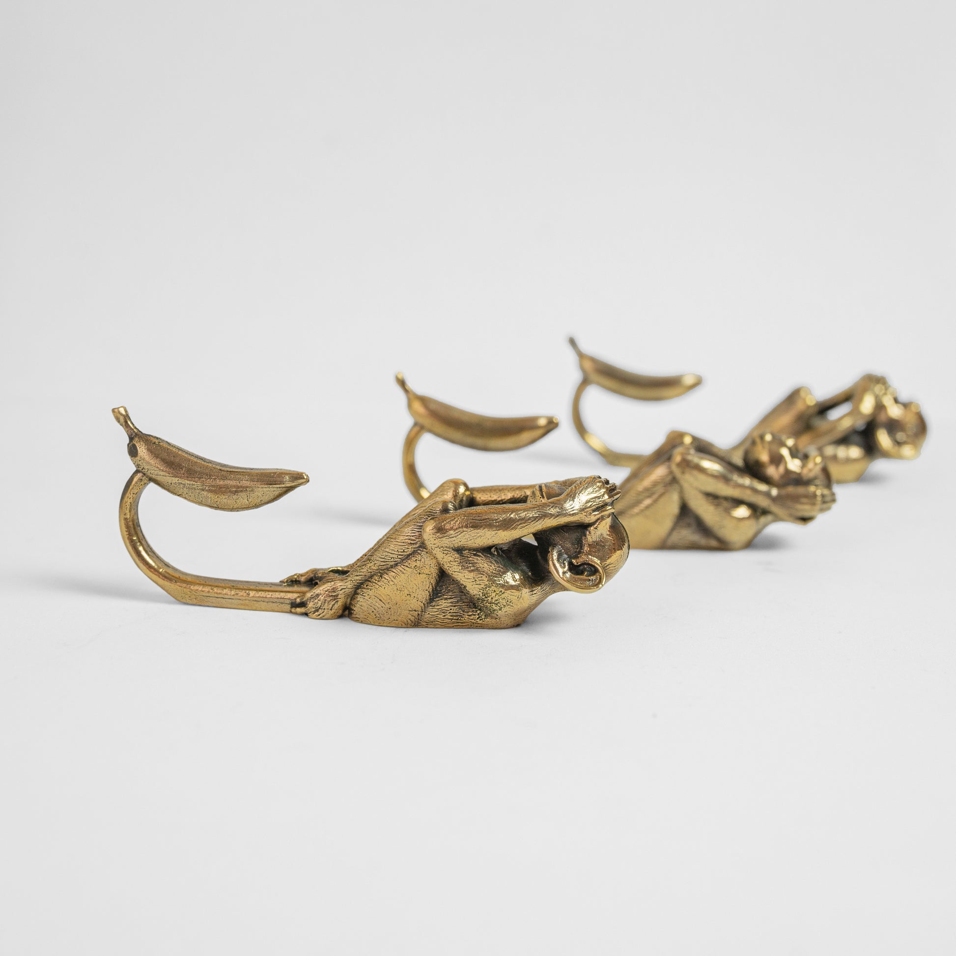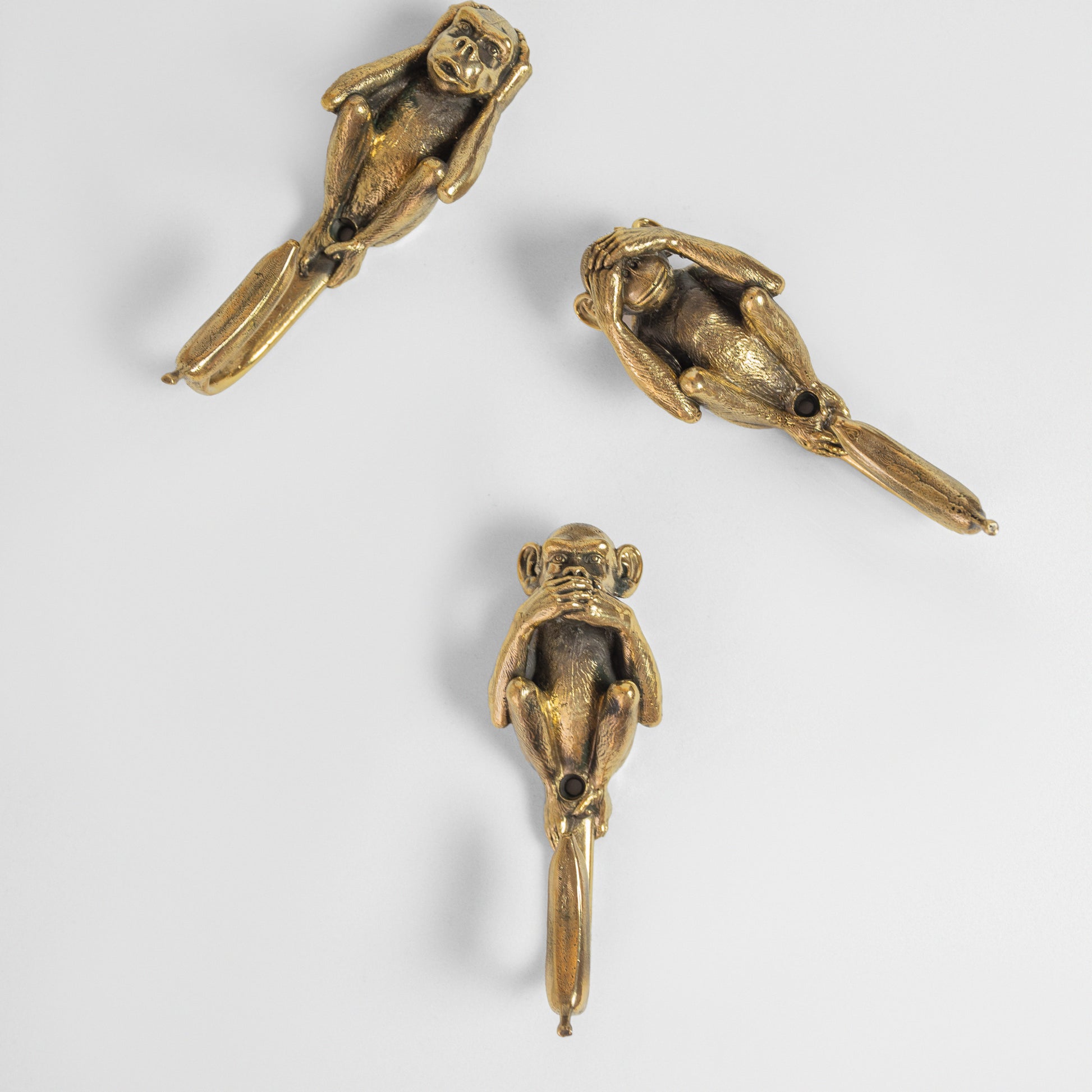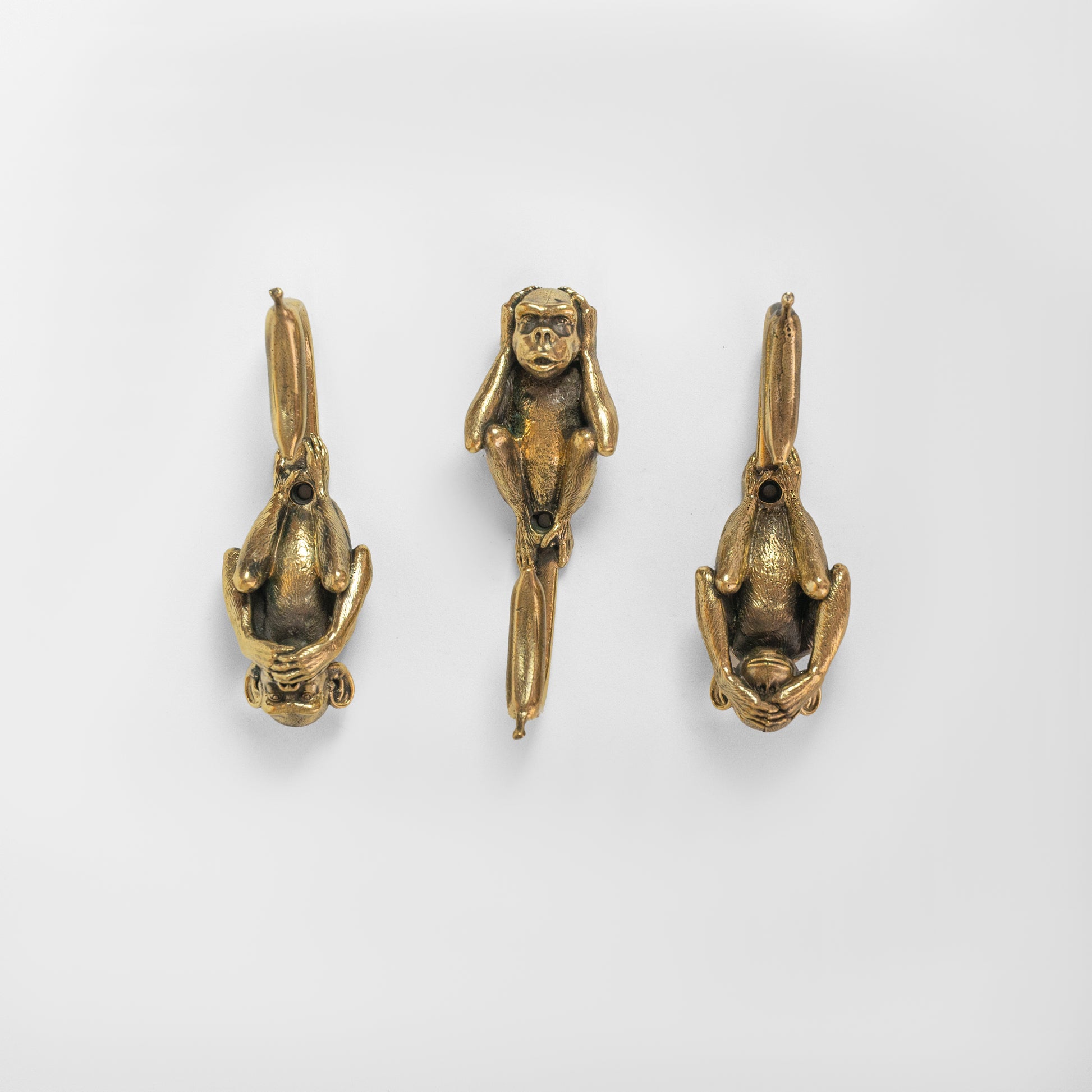 Each hook is cast from solid brass and represents one of the three wise monkeys — See No Evil, Hear No Evil, Speak No Evil.