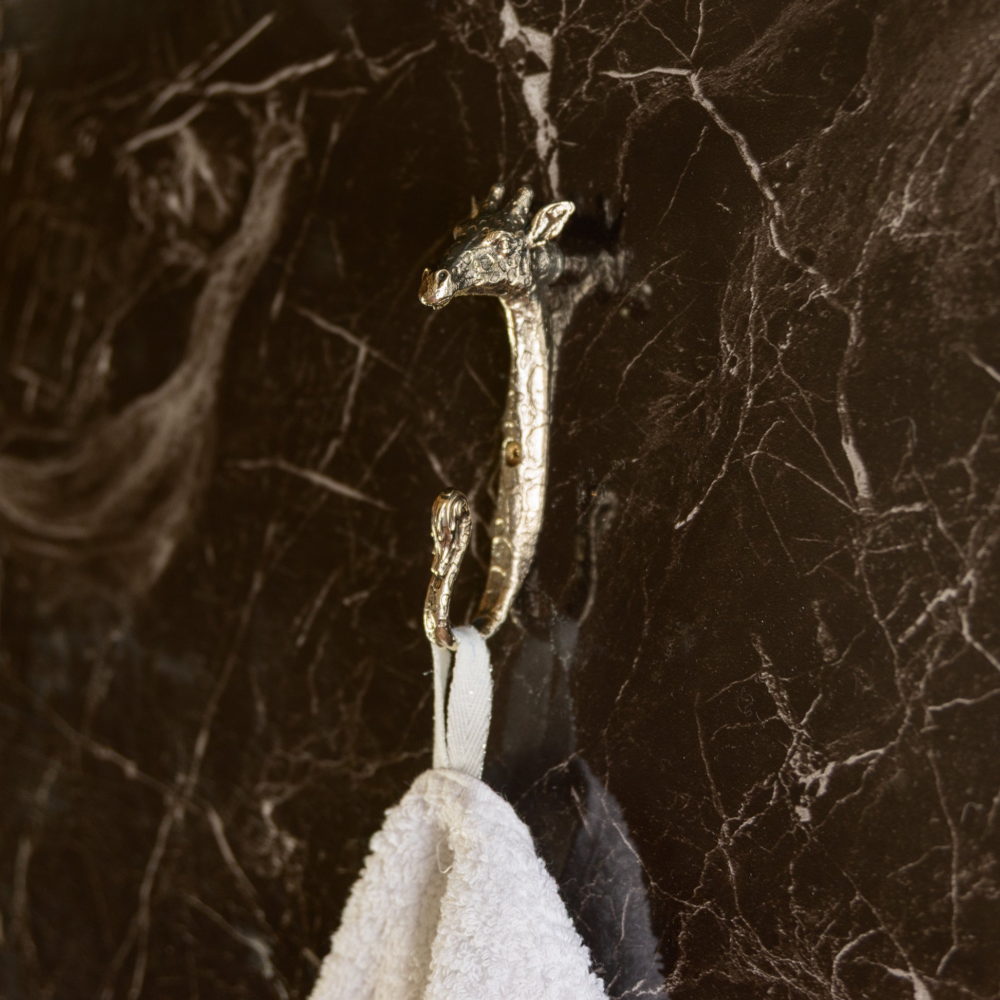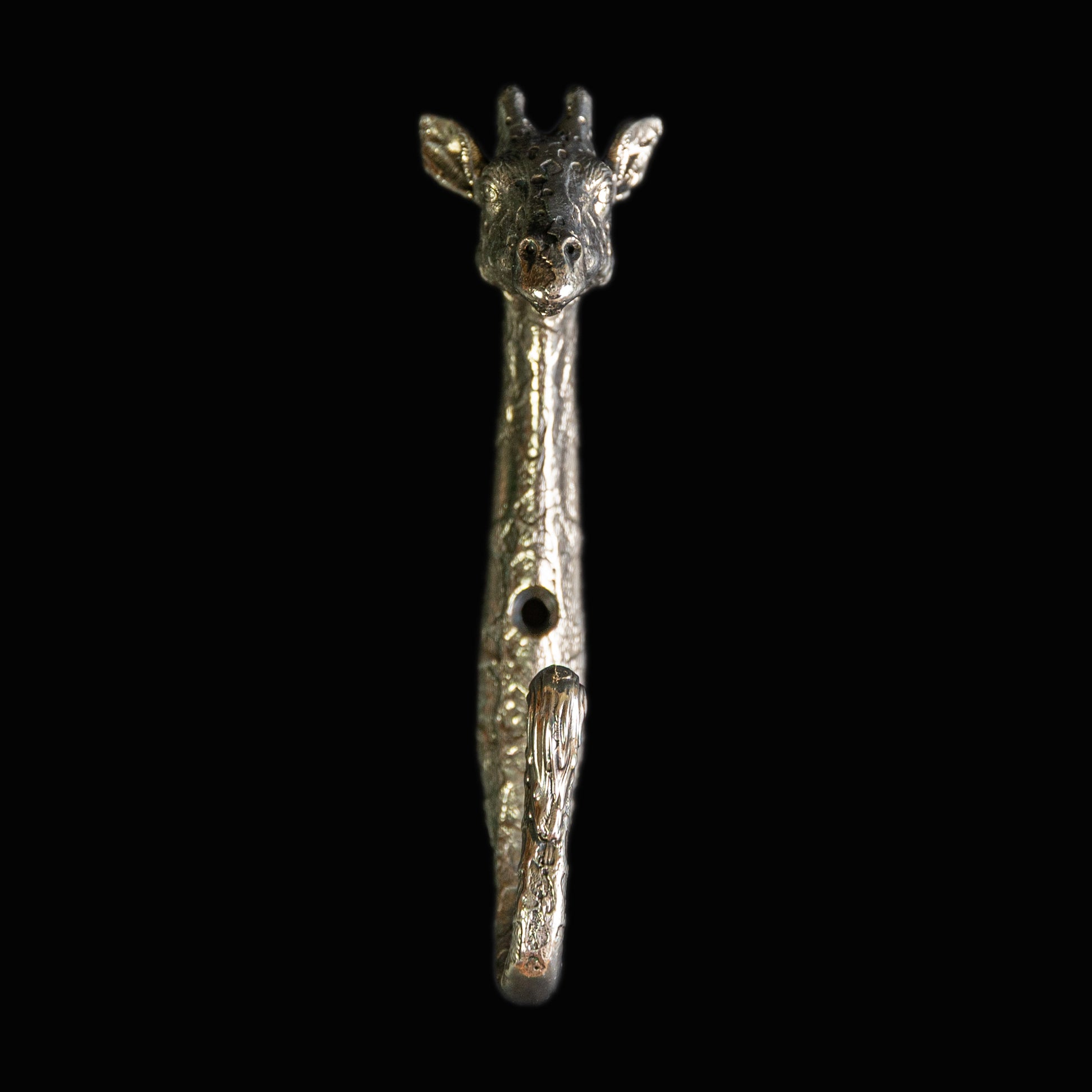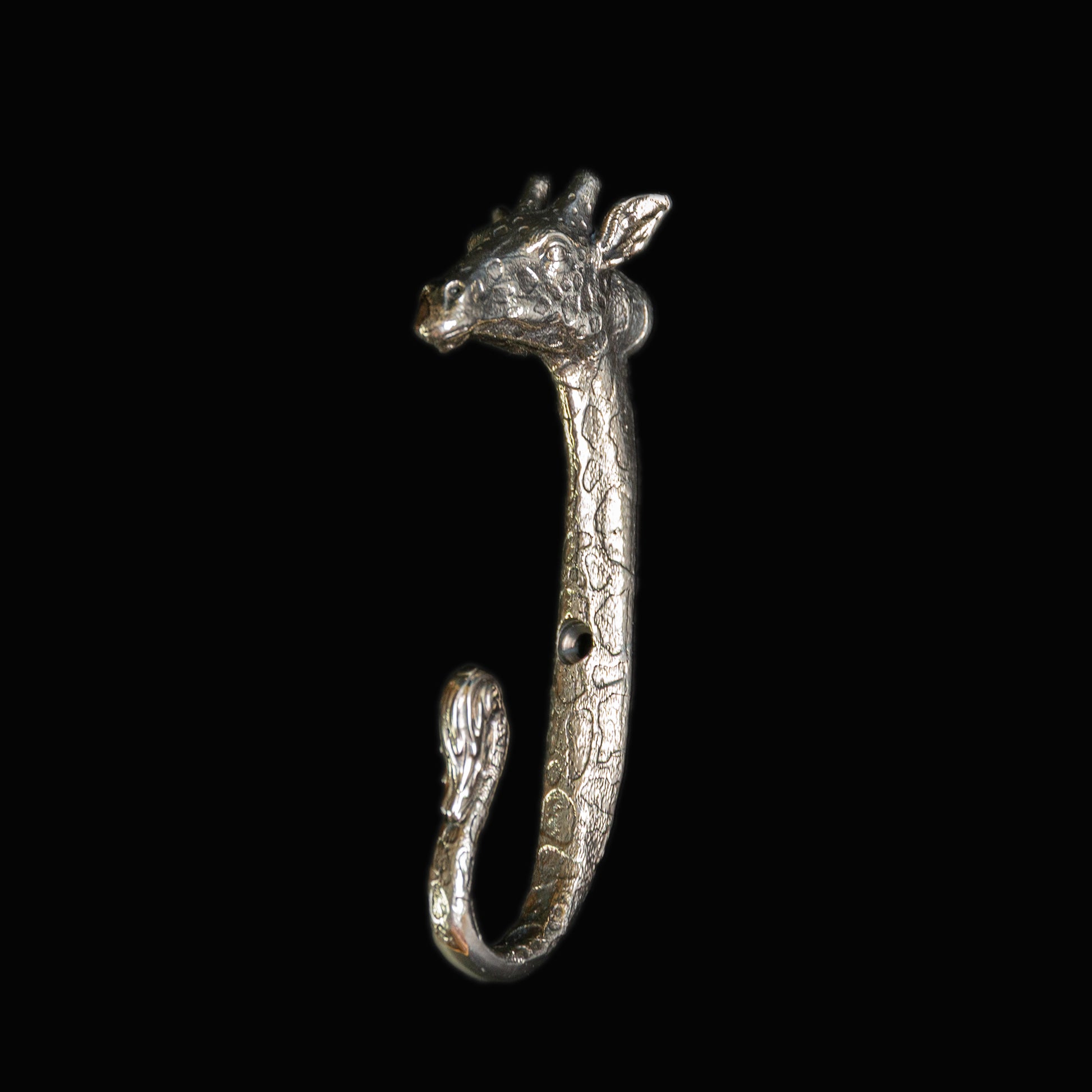 Додайте грайливого та екзотичного шарму вашому простору за допомогою цього настінного гачка ручної роботи Жираф, виготовленого з суцільного нейзильберу. Зі своїм ніжним виразом обличчя та елегантною шиєю жираф символізує грацію, бачення та унікальність, що робить його стильним та практичним акцентом.