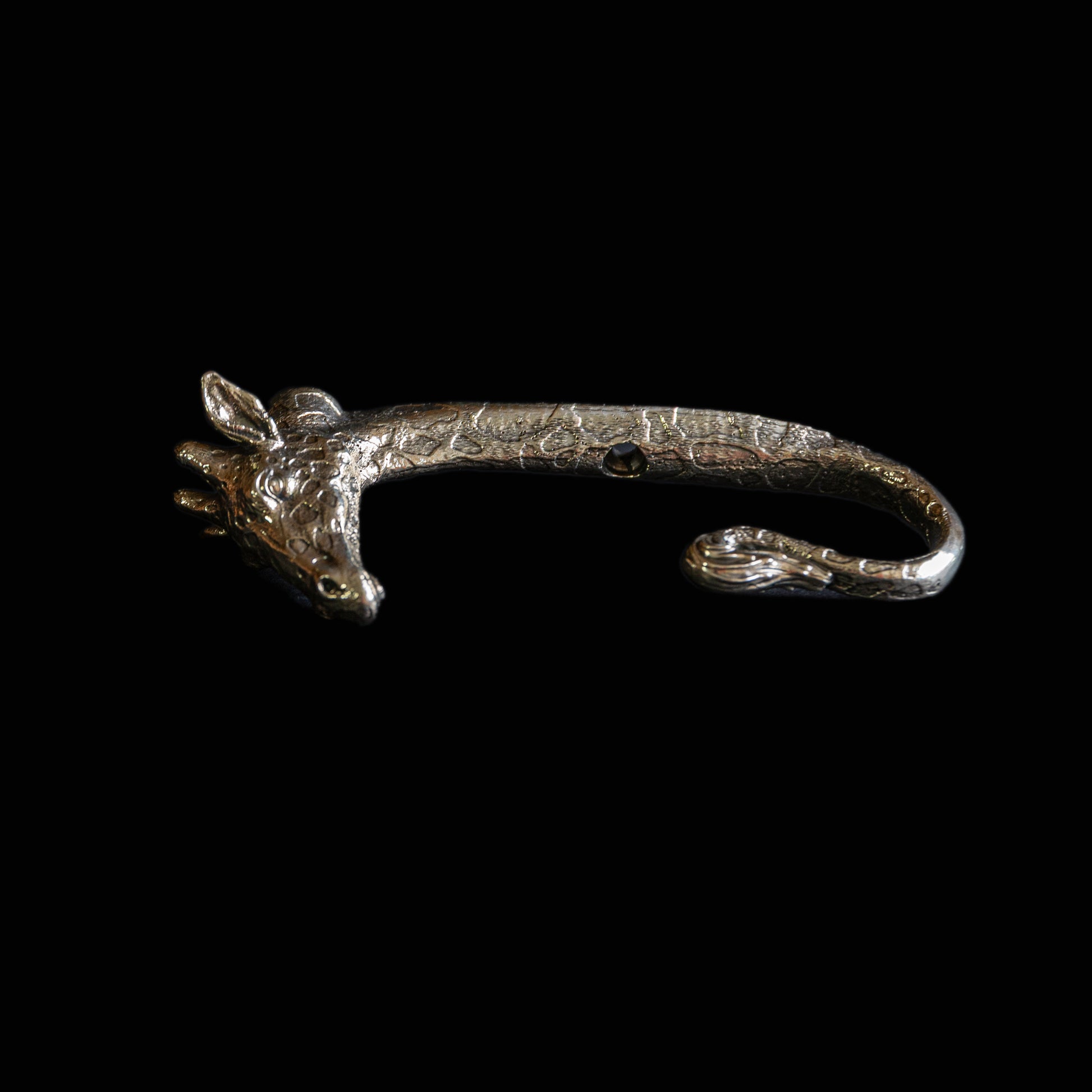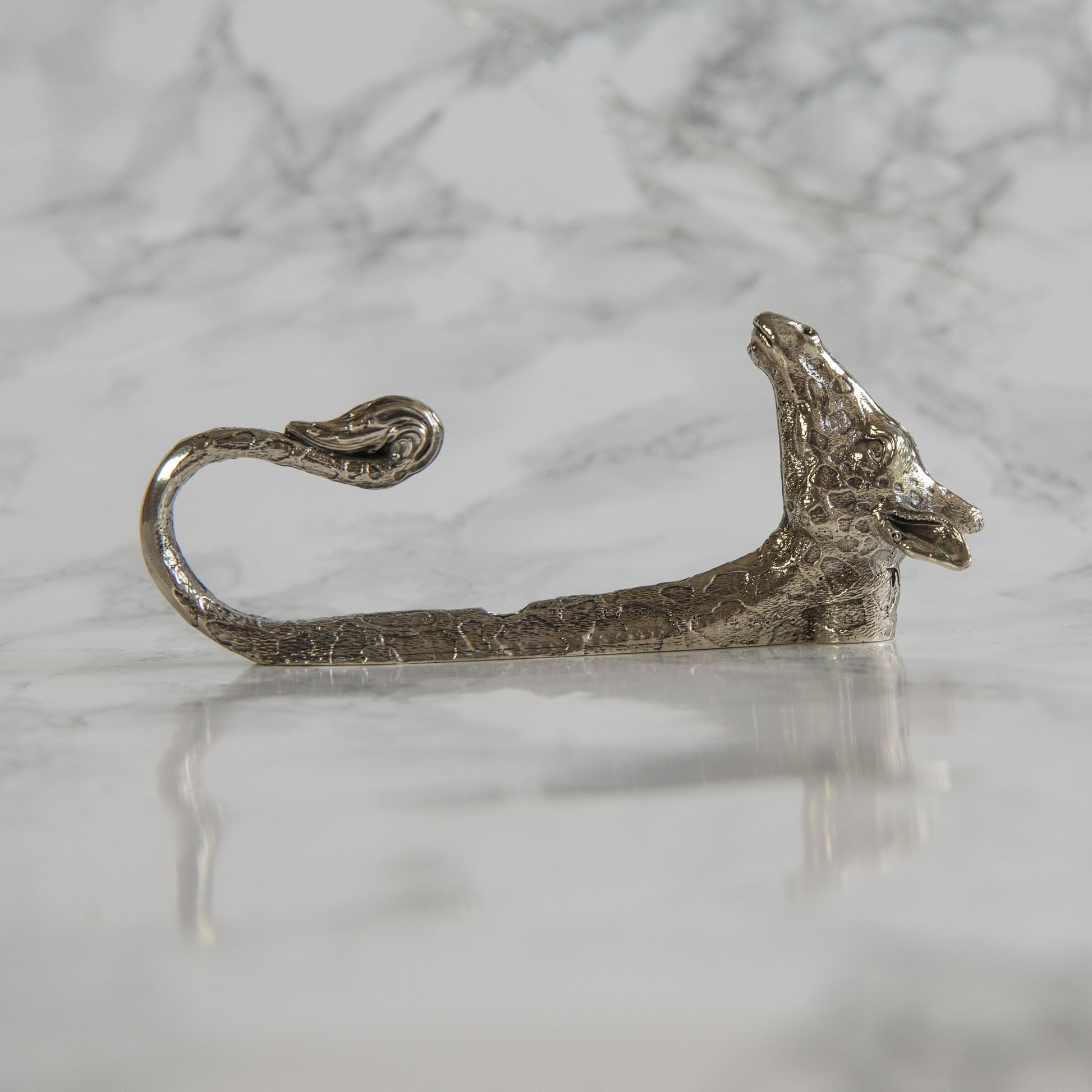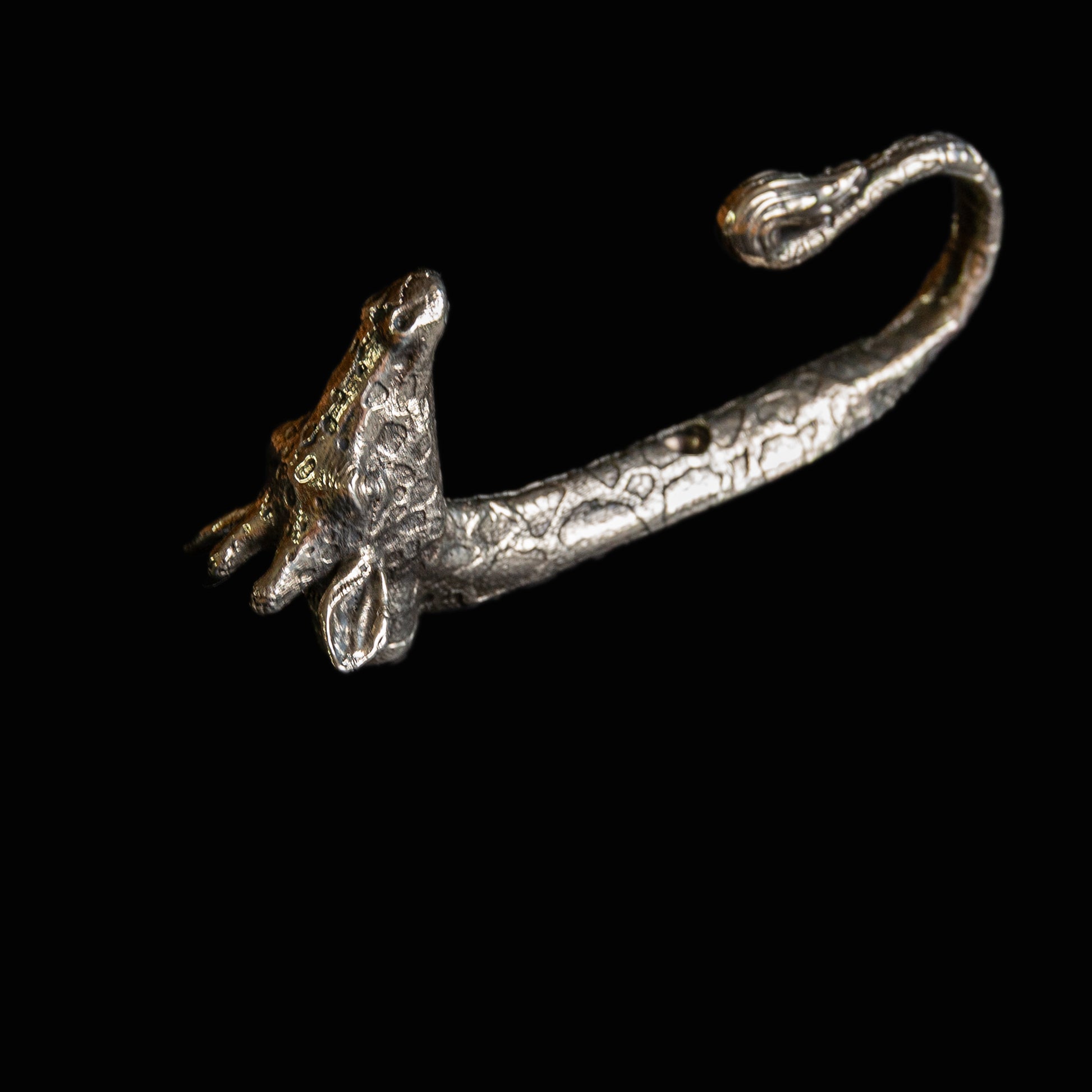 Додайте грайливого та екзотичного шарму вашому простору за допомогою цього настінного гачка ручної роботи Жираф, виготовленого з суцільного нейзильберу. Зі своїм ніжним виразом обличчя та елегантною шиєю жираф символізує грацію, бачення та унікальність, що робить його стильним та практичним акцентом.