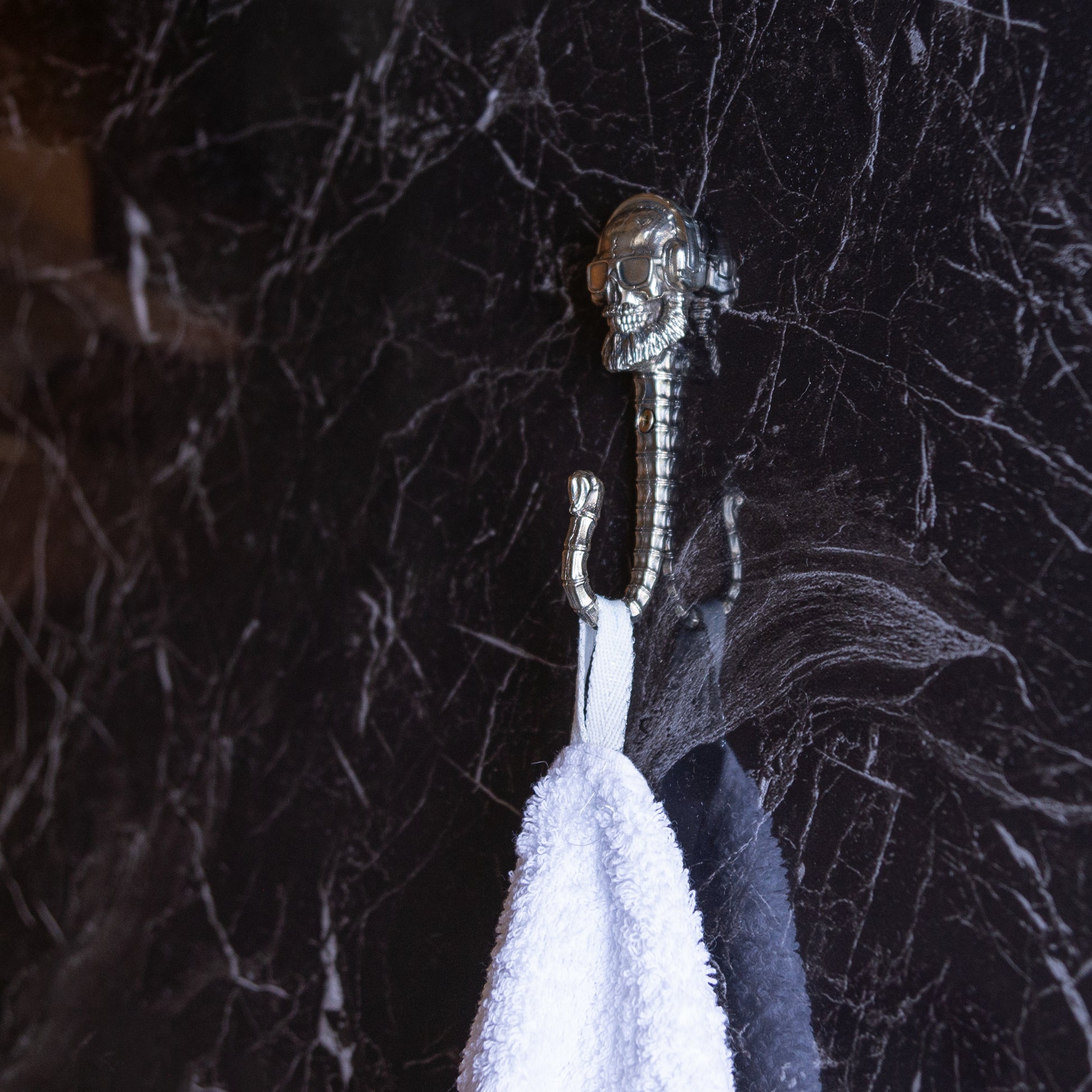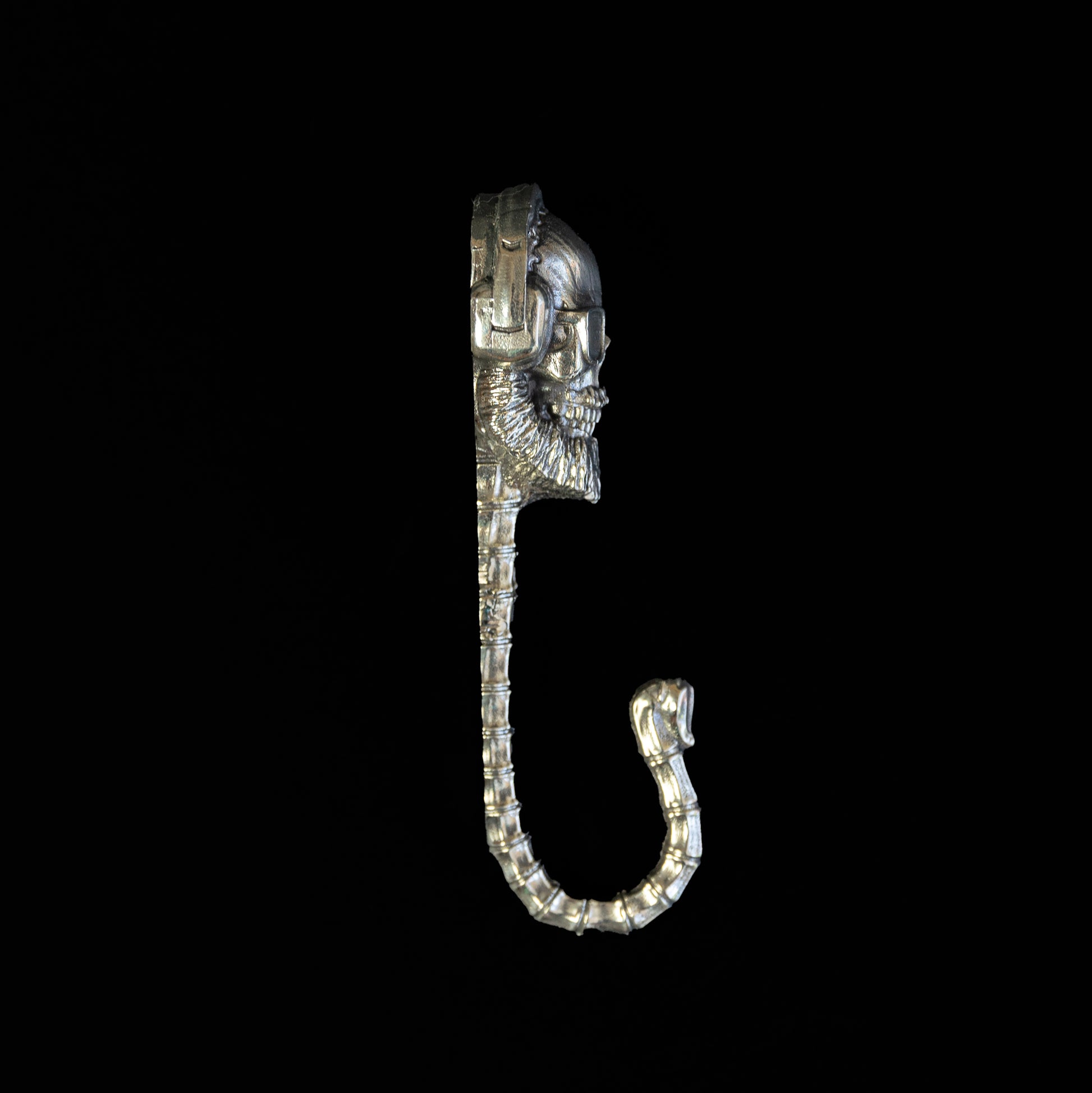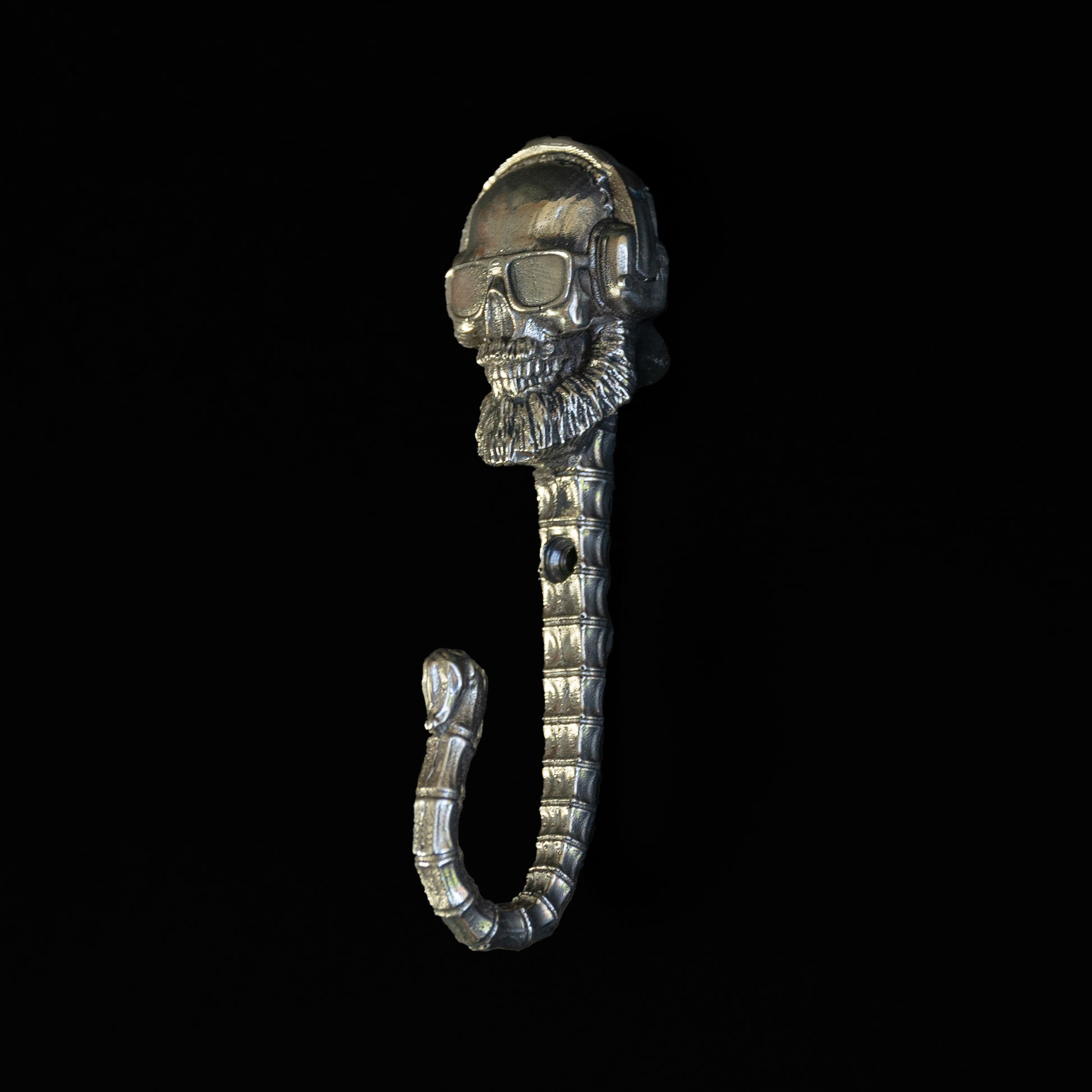 Зробіть заяву про себе за допомогою цього сміливого та художнього настінного гачка у Череп-Меломан, виготовленого вручну з міцного німецького срібла (нейзильверу). Цей гачок, що зображує бородатого черепа в навушниках та окулярах, поєднує в собі чорний гумор, музичну культуру та креативний стиль — ідеальне поєднання характеру та функціональності.
