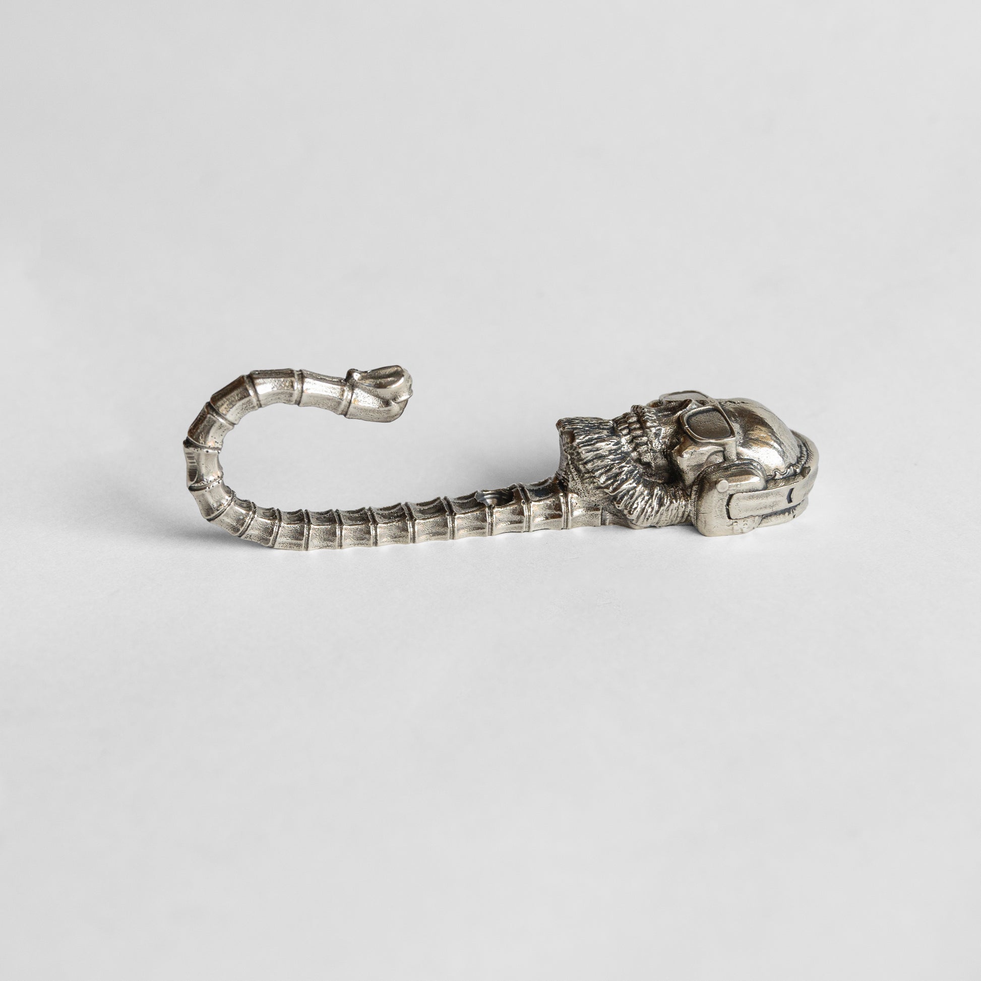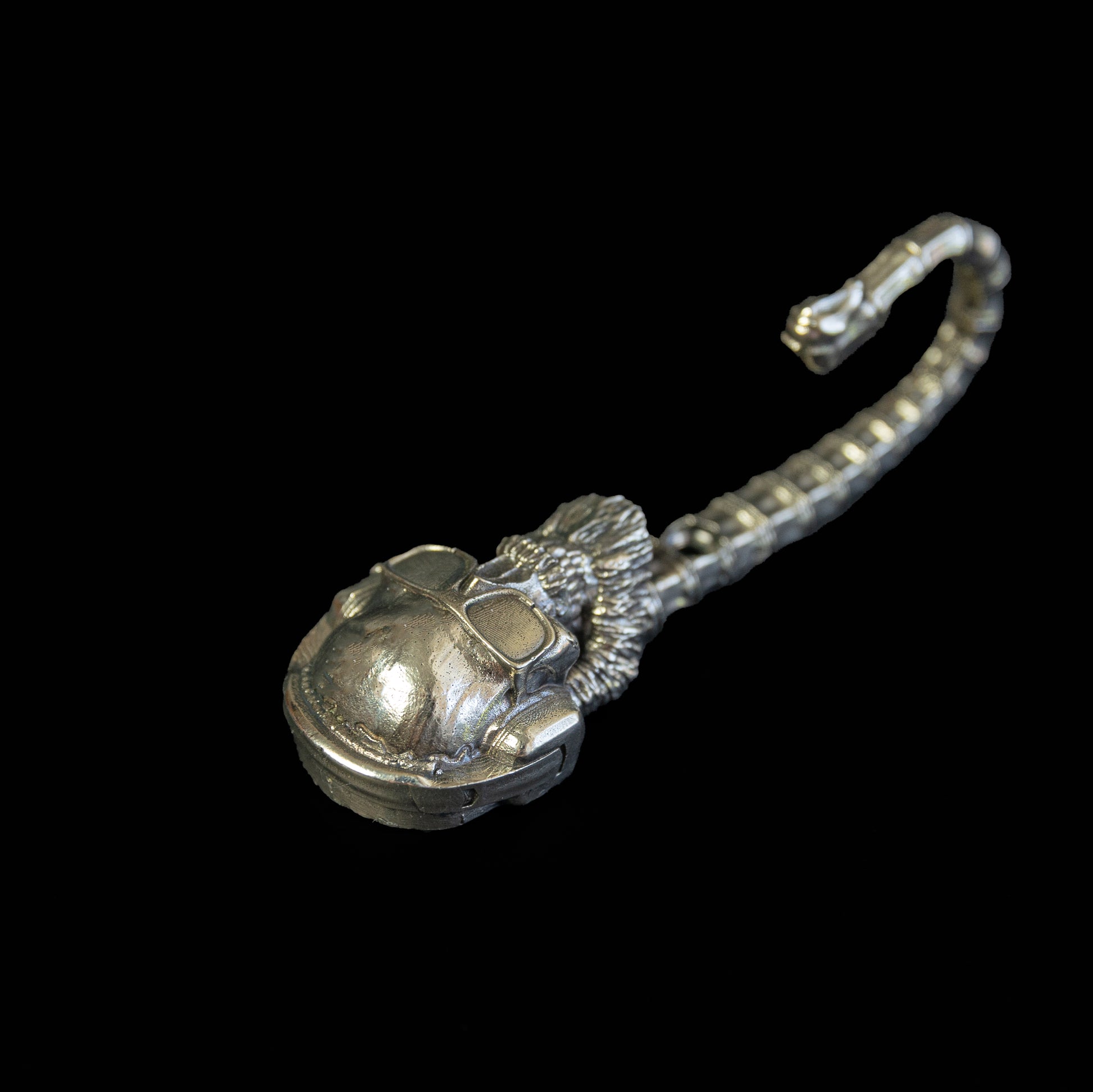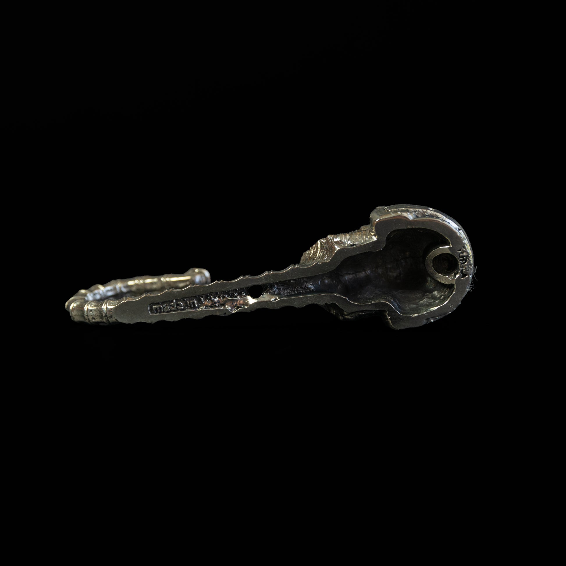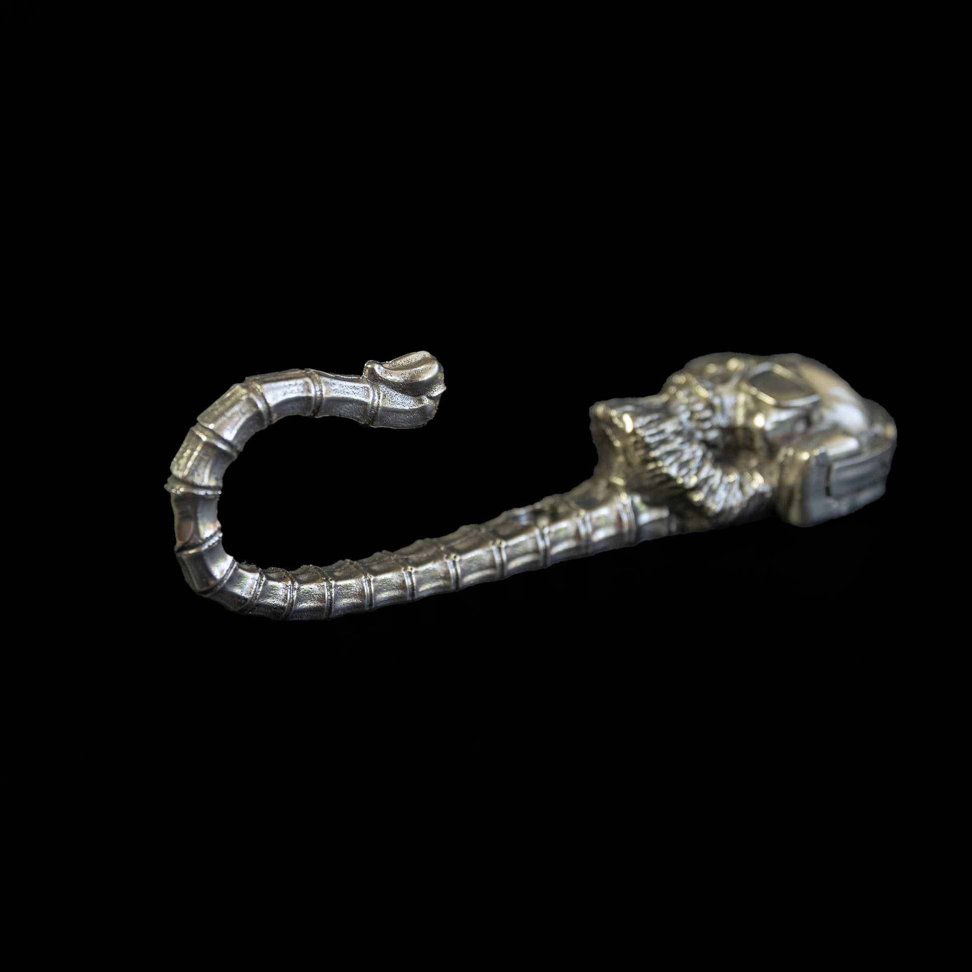 Зробіть заяву про себе за допомогою цього сміливого та художнього настінного гачка у Череп-Меломан, виготовленого вручну з міцного німецького срібла (нейзильверу). Цей гачок, що зображує бородатого черепа в навушниках та окулярах, поєднує в собі чорний гумор, музичну культуру та креативний стиль — ідеальне поєднання характеру та функціональності.