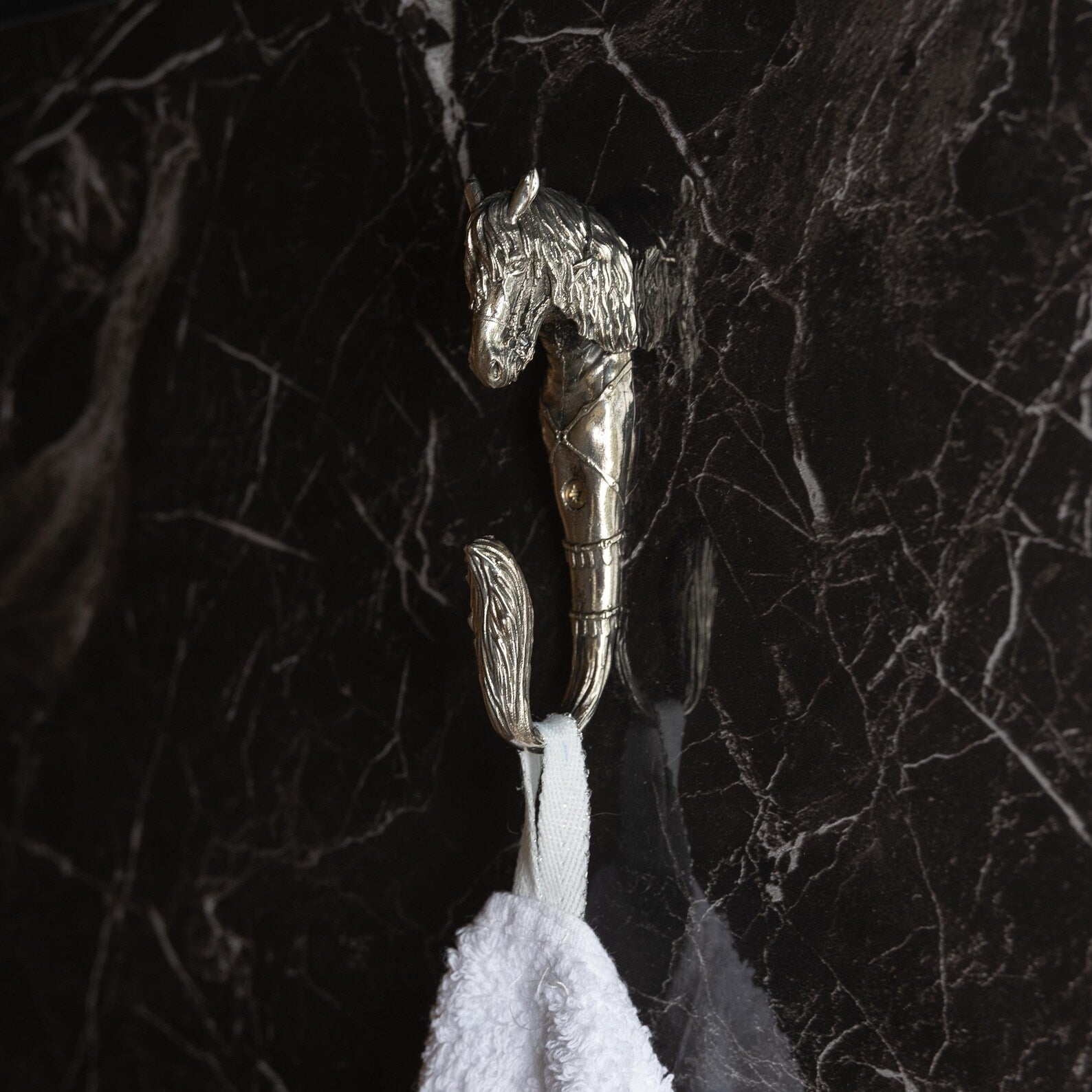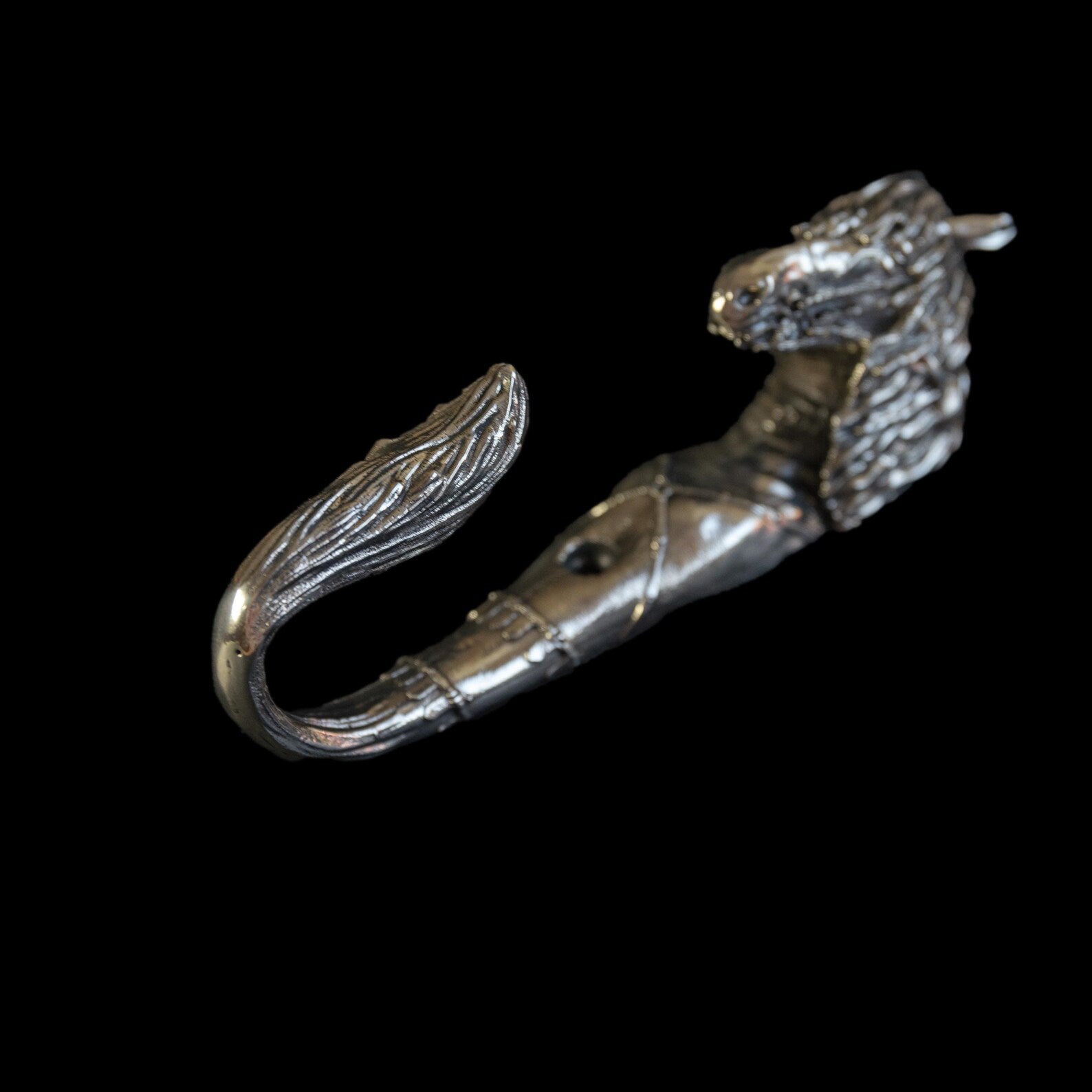 Додайте нотку елегантності та міцності своєму простору за допомогою цього настінного гачка ручної роботи Кінь, виготовленого з масиву нойзільберу (нейзильберу/нейзильберу). Цей міцний декоративний гачок ідеально підходить для зберігання пальто, ключів, сумок або рушників, а також слугує яскравим акцентом в інтер'єрах у кінному стилі або сільських будинках.
