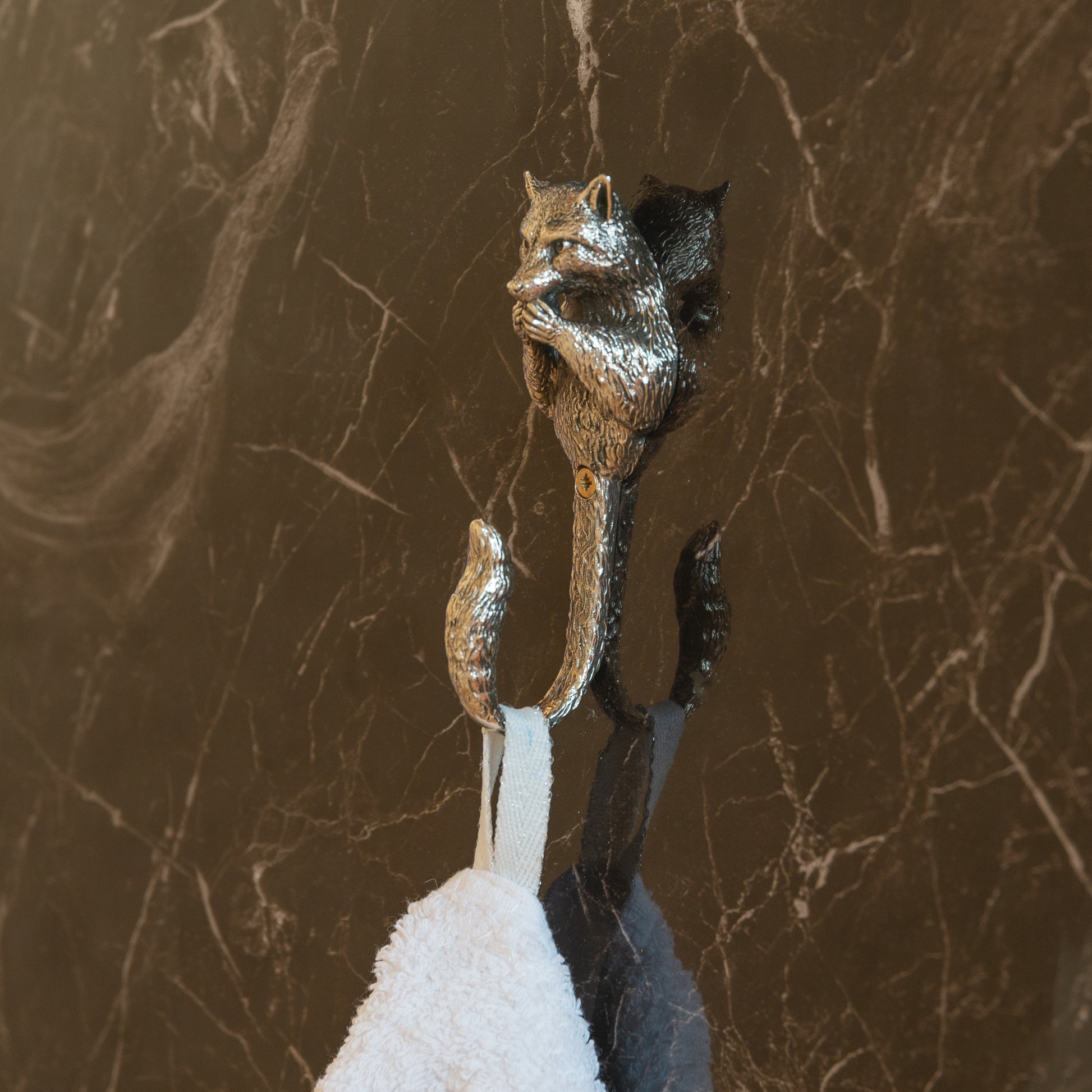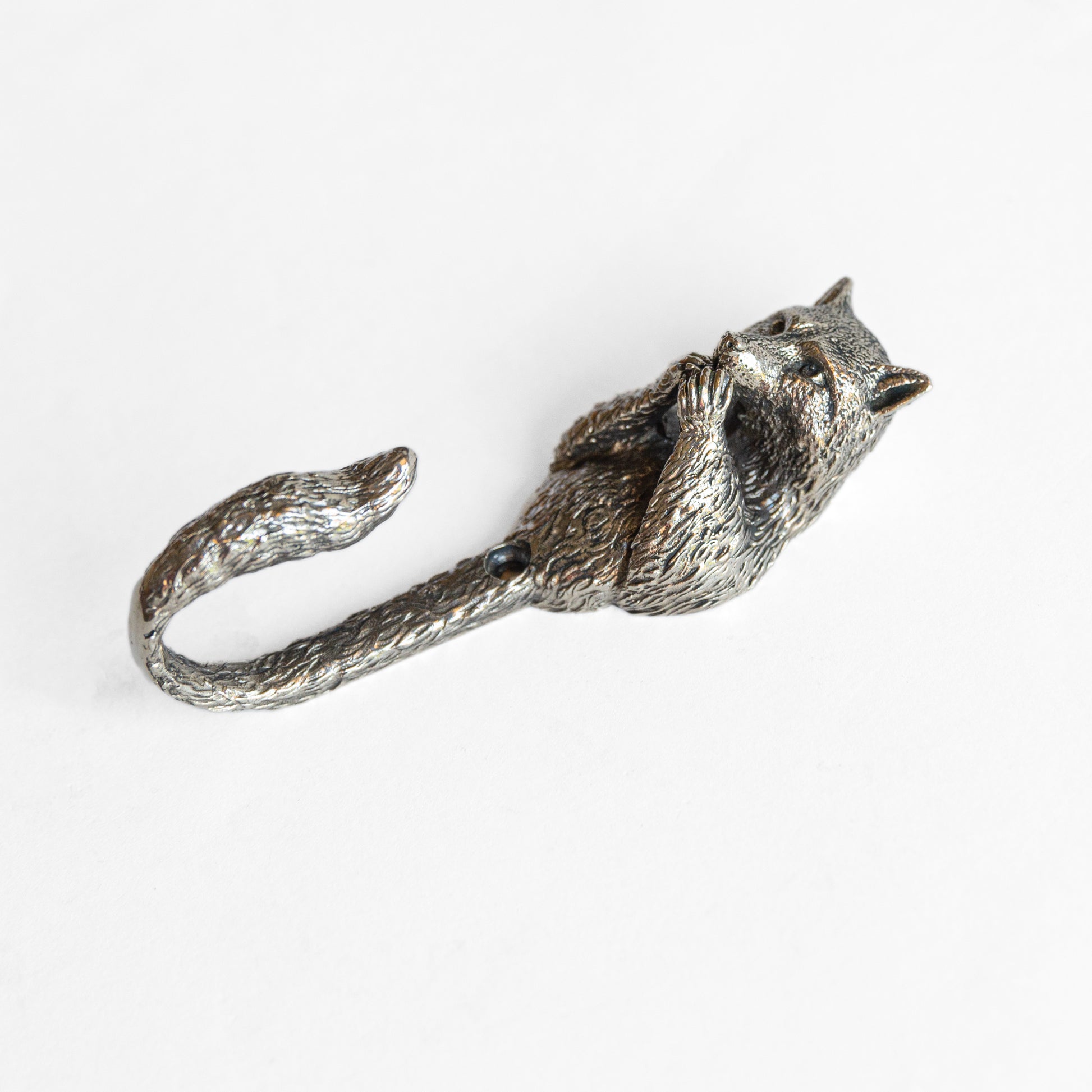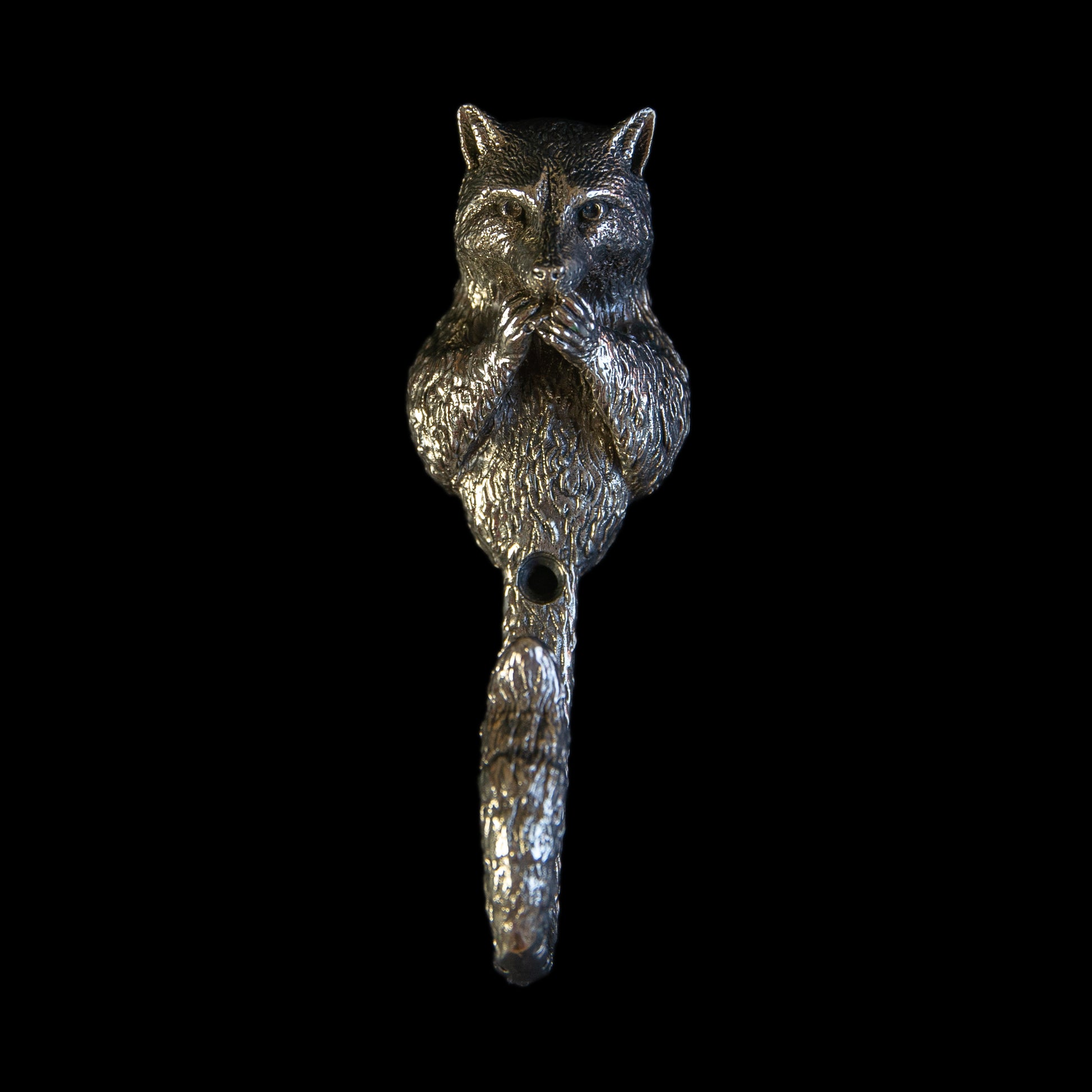 Додайте шарму та характеру вашому простору за допомогою цього настінного гачка ручної роботи Єнот, виготовленого з міцного нейзильберу (мельхіору). Зі своїми допитливими очима та грайливими рисами обличчя єнот – улюблена лісова тварина, яка додає затишку та химерності будь-якому інтер'єру.