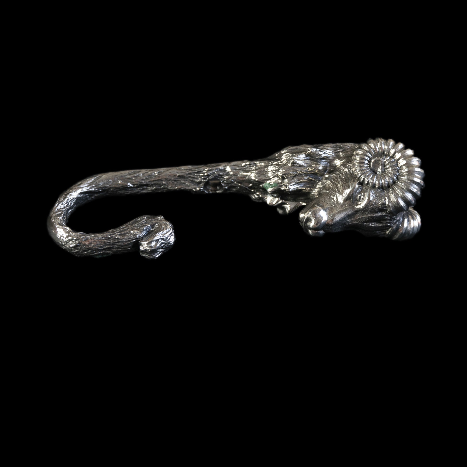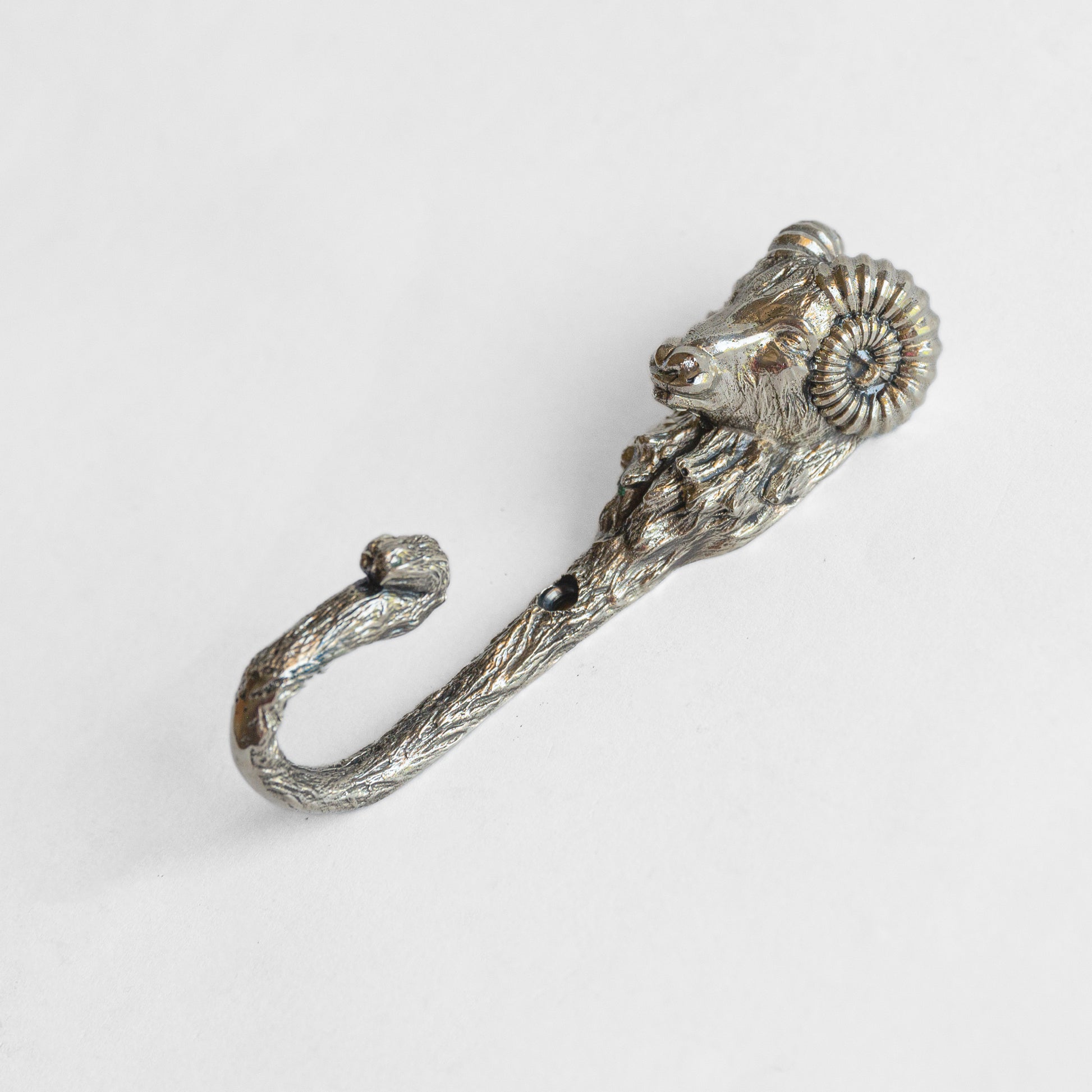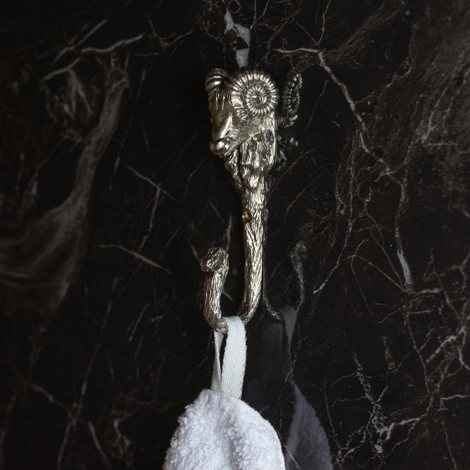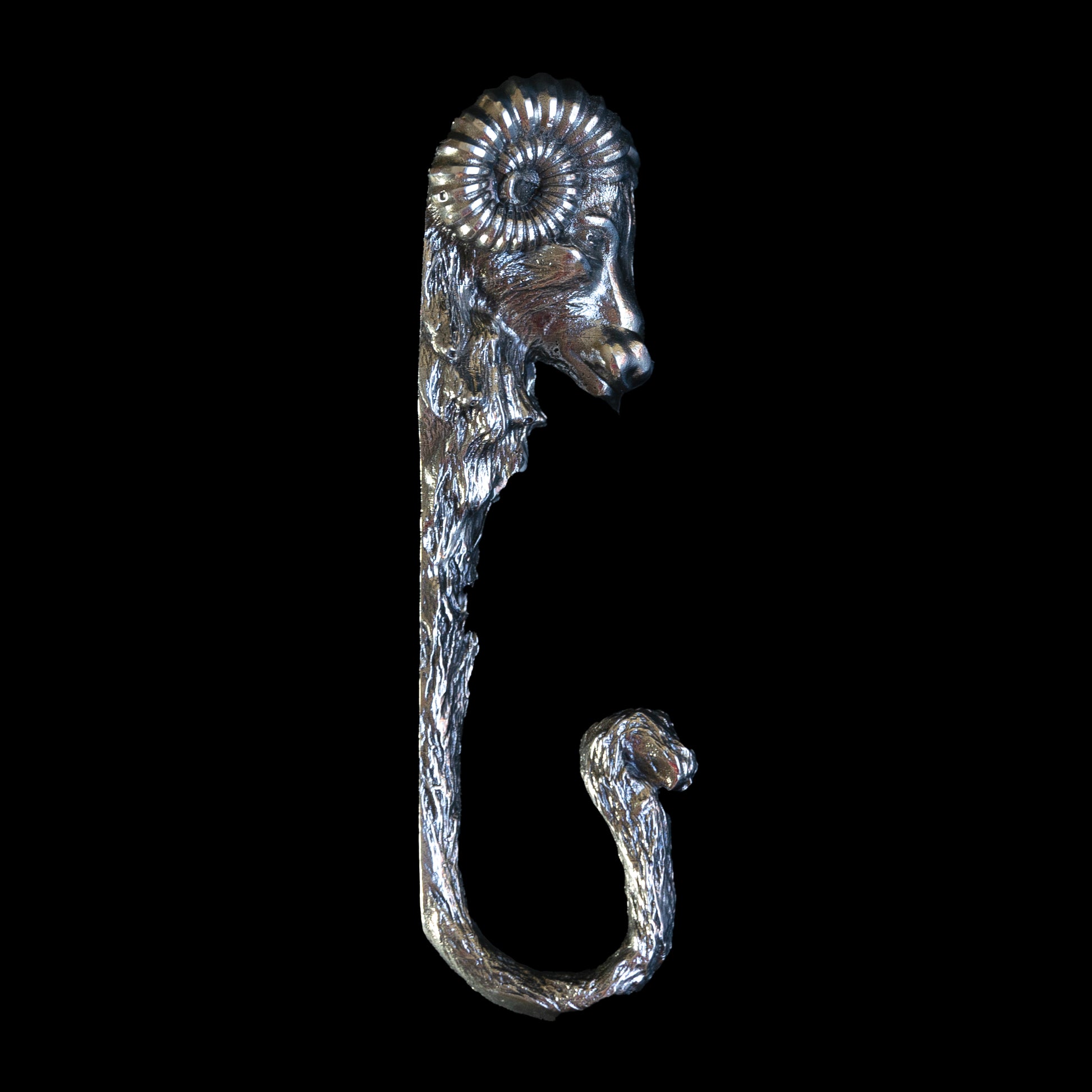Додайте сміливості та сили своєму дому за допомогою цього настінного гачка ручної роботи Овен, відлитого з суцільного нейзильберу (нейзильбер/нейзильбер). Завдяки детально вирізаним рогам та символічній силі, цей гачок ідеально підходить для сільського інтер'єру, для любителів знаку зодіаку Овен або для будь-кого, хто цінує унікальний функціональний декор.